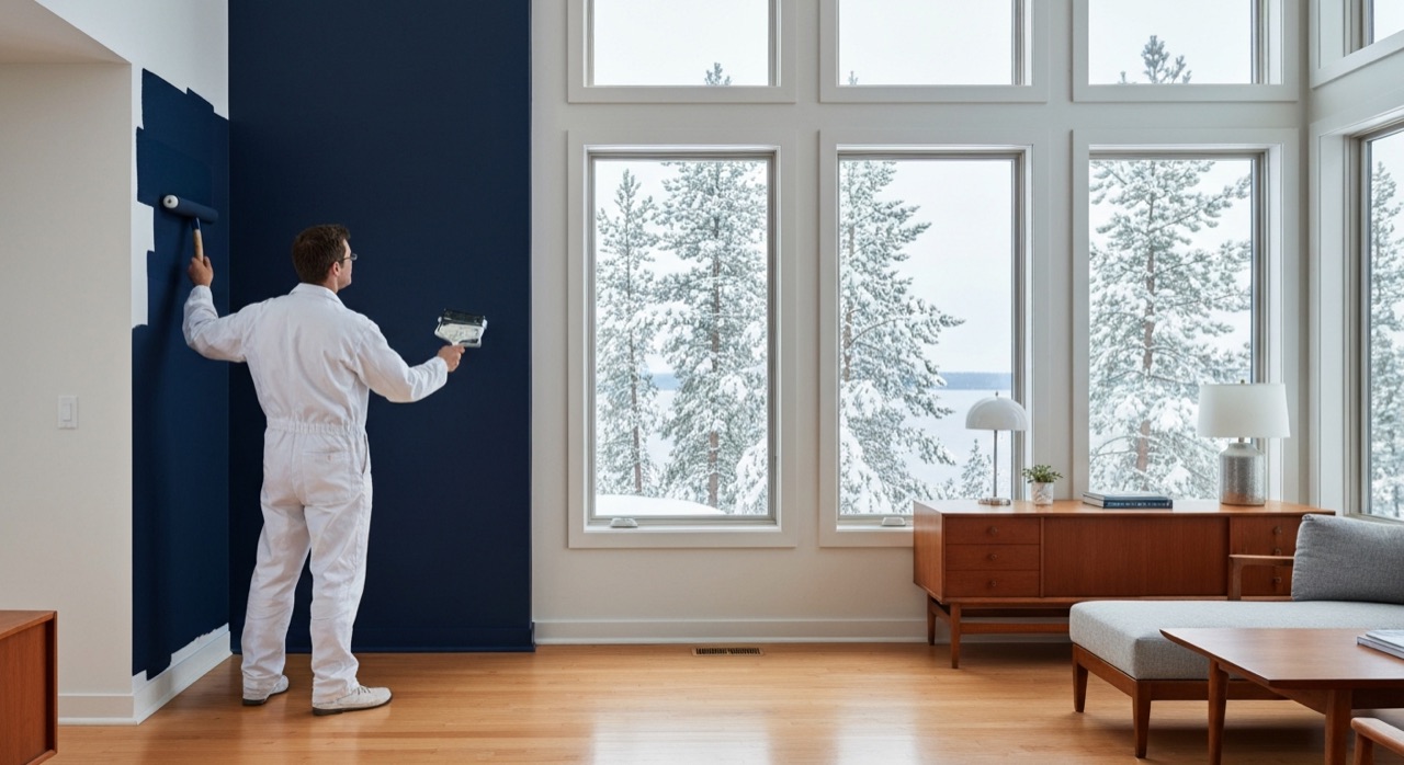 The Zone 4b climate drives our scheduling. North Bay sits in plant hardiness Zone 4b with harsh winters and freeze-thaw cycles from mid-October through April. Our exterior crews are locked into siding work from late May through mid-September, which is exactly why interior season runs October through May. Modern water-based Benjamin Moore Regal Select and Dulux Diamond cure cleanly at indoor temperatures of 18 to 22 Celsius even at minus 25 outside.