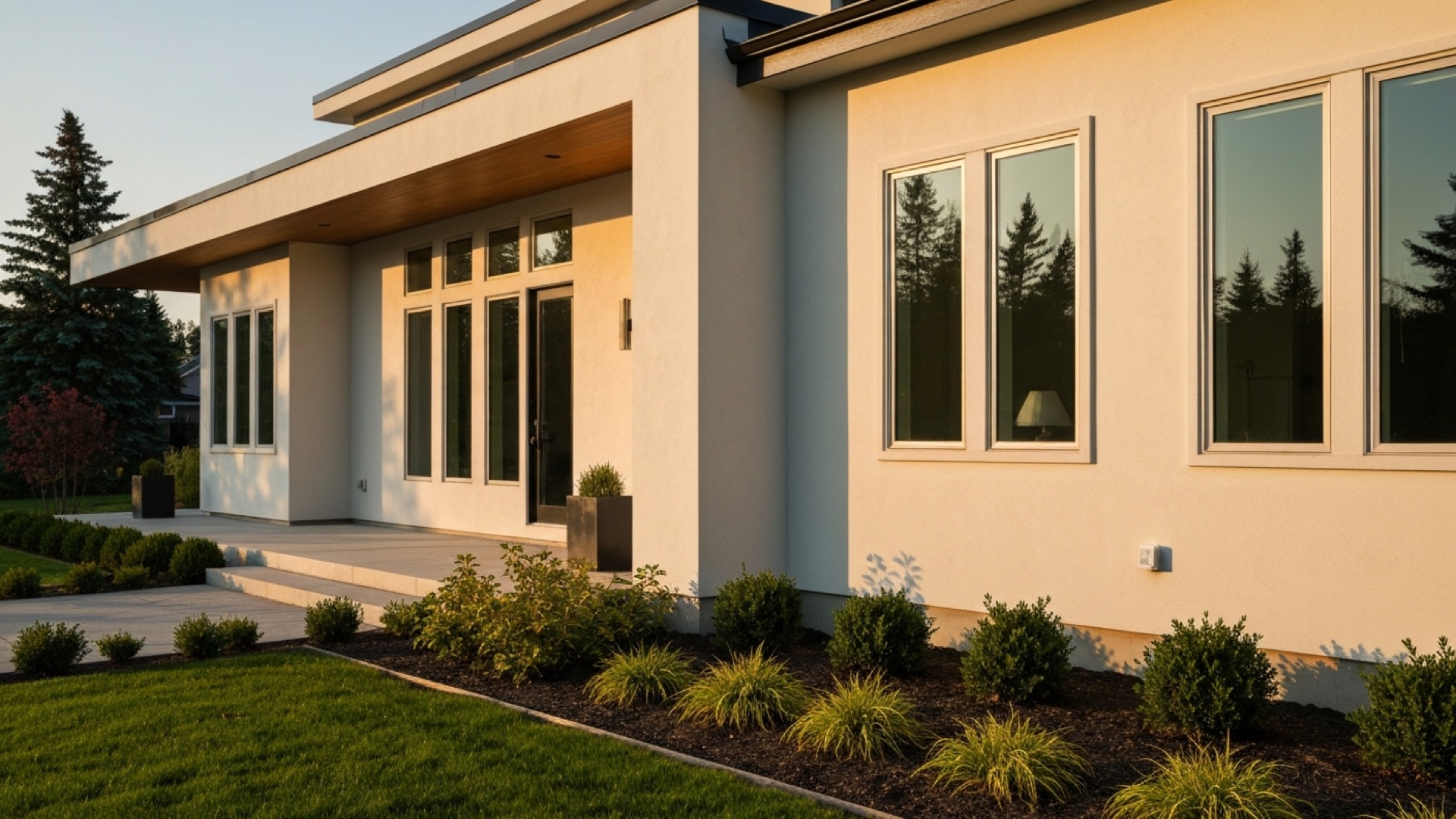 We use Benjamin Moore for most stucco work in North Bay. Their exterior elastomeric and 100% acrylic masonry coatings handle Northern Ontario freeze-thaw, bridge hairline cracks, and resist UV chalking on south and west exposures.